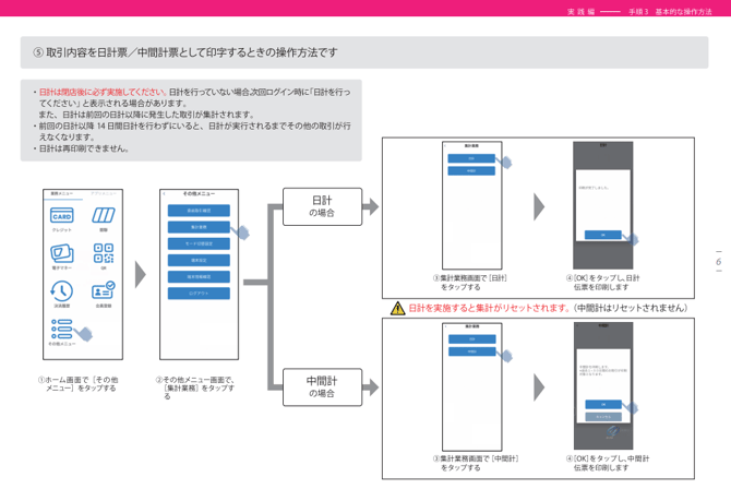 - 取引内容の日計/中間計を印字する