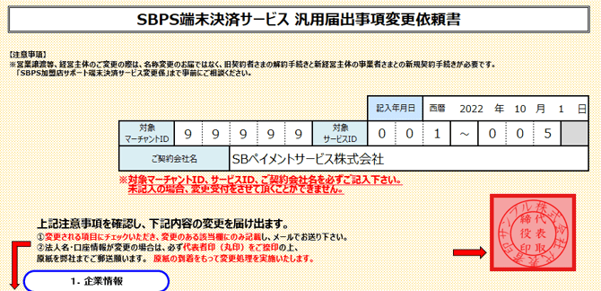 ※1. 印刷した変更依頼書に「代表者印(丸印)」を押してください。押印した原本をご郵送ください(コピー不可)。