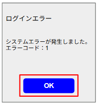 エラー画面で「OK」ボタンをタップし、「ログインID」「パスワード」が空欄になっていないか確認する