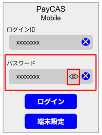 続いて「パスワード」を入力し、「目玉マーク」をタップして入力値を確認する