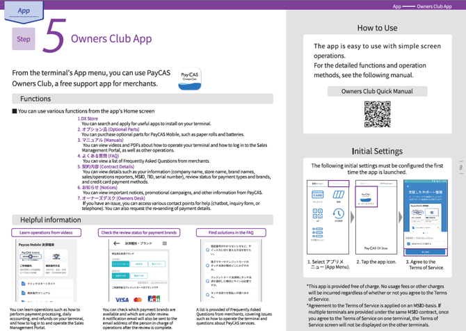 The Owners Club allows you to check customer information and application status. You can also add or cancel apps. See here for details.