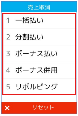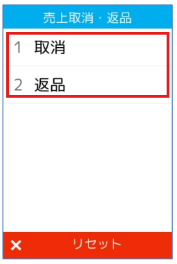 ※ 取消は「当日分の売上」、返品は「当日分以外の売上」を意味します。