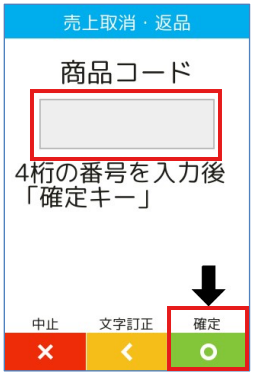 - 商品コード(4 桁)を入力し、[ 確定ボタン ]を押す