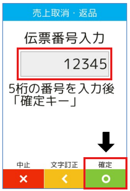 - 伝票番号(最大 5 桁)を入力し、[ 確定ボタン ]を押す