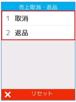 ※ 取消は「当日分の売上」、返品は「当日分以外の売上」を意味します。
