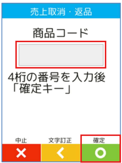 - 商品コード(4 桁)を入力し、[ 確定ボタン ]を押す