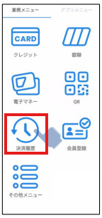 - 決済端末のホーム画面で、 [ 決済履歴 ]を押す