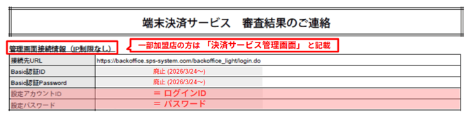 - 審査結果通知書で、管理画面のログイン情報を確認する(※1)